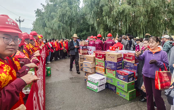 在欢送现场,榆中县人民政府及城关镇领导向华邦建投集团等企业代表授予“抗洪救灾千秋颂 危急时刻伸援手”等荣誉锦旗。老百姓精心准备的红色围巾与喜庆被面,被一一送到抢险队员手中;现场群众自发送出自家的馍馍、水果、蔬菜,质朴的礼物饱含深情。一位市民眼含热泪说道:“感谢你们不舍昼夜帮助我们重建家园,这些吃的都是我们的心意!”