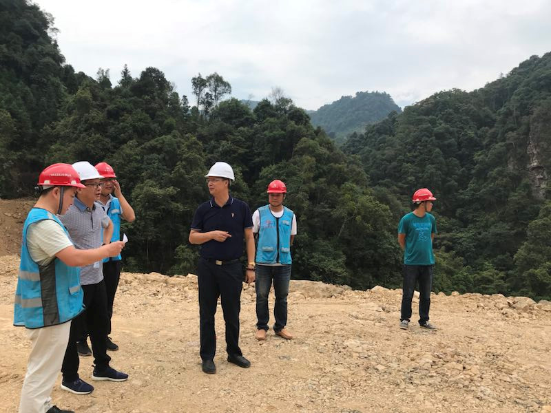 调研组一行在施工现场