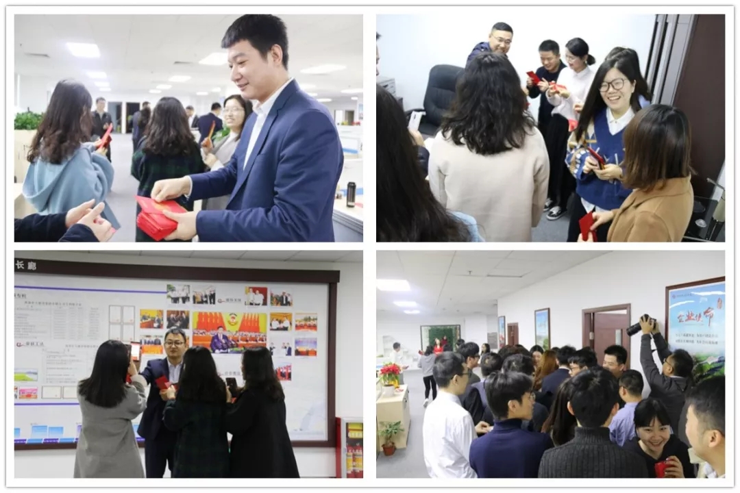 在桂龙、信尔达、喜易达等分子公司,开工的第一天,大家也相互拜年问好,派发红包,互送祝福,共贺新年!