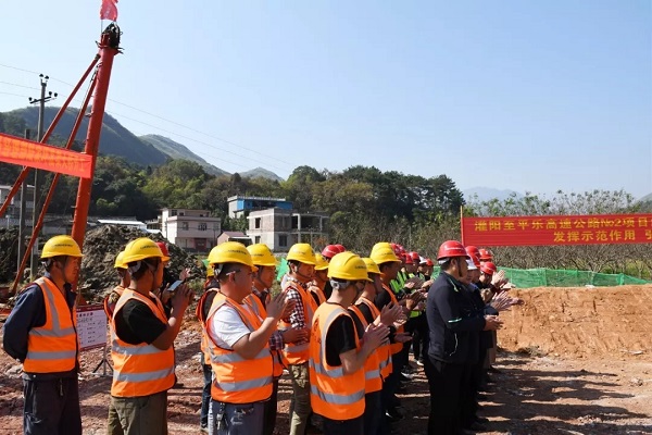 11月11日,华邦建投集团承建的灌阳至平乐高速公路陆家坪高架大桥桩基施工正式启动。灌阳县副县长杨小龙、县交通运输局、县公安局、灌平高速征拆协调指挥部等领导,灌平二标项目部负责人及施工人员出席了开工仪式。