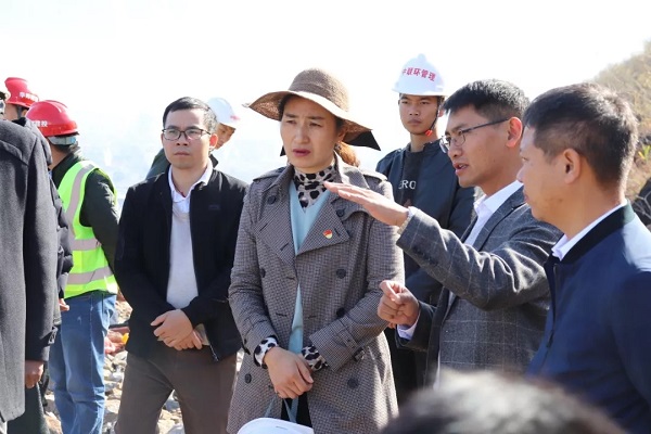 调研中,吴海芬对华邦建投集团在施工组织、质量、进度及安全防护措施等方面给予了高度评价和充分的肯定。吴海芬强调,西面山石漠化严重,山体坡度大,设计施工方案需结合西面山实际情况,加强施工安全管理。她要求陪同调研的县属各相关部门、项目建设各单位大力配合承建单位开展工作,为施工的顺利开展提供条件,确保该项目施工进展顺利。