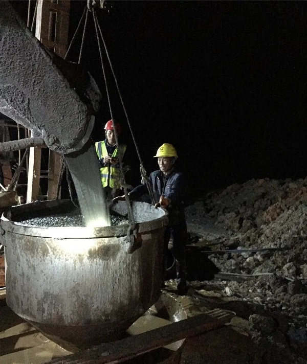 ▲ 连夜进行混凝土浇筑