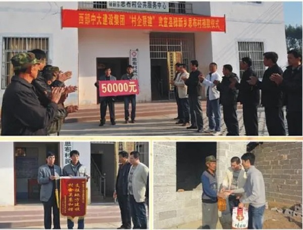 2011年修建桂来高速公路时,华邦建投开展“村企联建”活动,为思布村捐款5万元,用于建设当地文化广场,并派施工出机械对村道进行整修,慰问困难户。