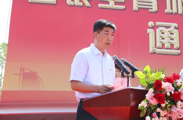 ▲白银市委副书记、市长张旭晨宣布白银至青城古镇旅游公路正式通车运行