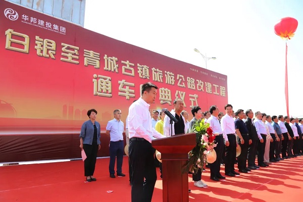 白银市委书记苏君出席仪式,甘肃省交通运输厅,甘肃省文旅厅及白银市委、市政府相关领导,相关单位参加仪式。白银区委书记石福胜致辞,区委副书记、区长张莉主持仪式。华邦建投集团执行总裁胡秉军代表建设单位介绍白榆公路项目建设情况。
