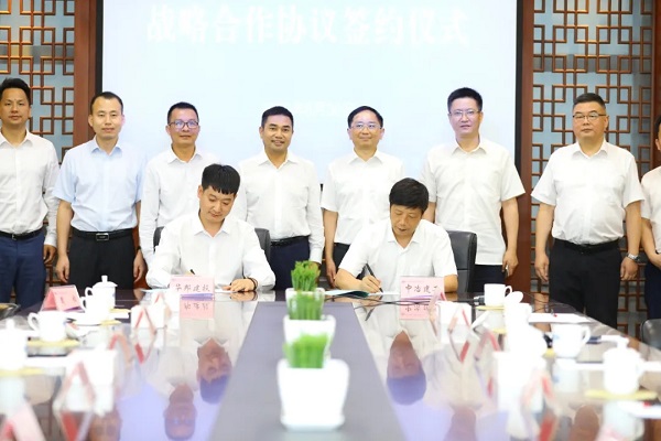 最后,华邦建投集团执行总裁蔡继荣与中冶建工集团党委委员、副总经理陈喻白分别代表双方签订战略合作协议。该协议的签订标志着华邦建投集团与中冶建工集团将抢抓“成渝双城经济圈”和“一带一路”重要战略发展机遇,共同携手,深入合作,充分运用各自优势,深入拓展西南市场,实现合作共赢。