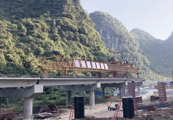 ▲ 桂柳四标山贝桥右幅现浇混凝土箱梁完成