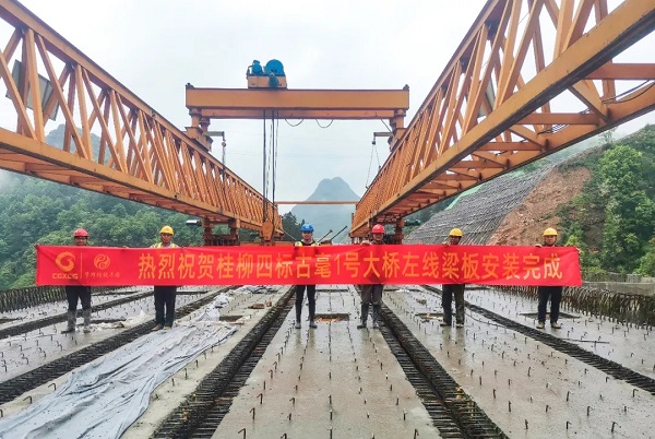 ▲ 桂柳四标古毫1号大桥左线梁板安装完成