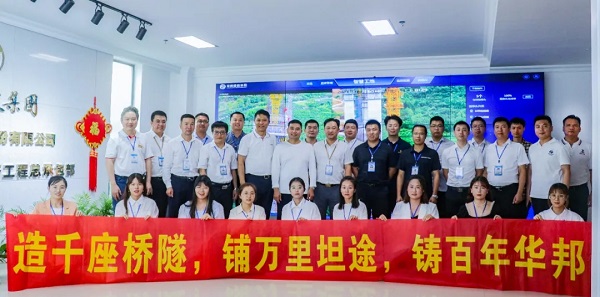 随后,苏如春来到灌平高速总承包部,通过观看视频、听取汇报等方式,详细了解了灌平高速建设进展、智慧工地建设情况,看望慰问总包部员工并合影留念。苏如春嘱咐全体员工要发扬华邦精神,不忘初心,继续践行“造千座桥隧,铺万里坦途,铸百年华邦”的使命。