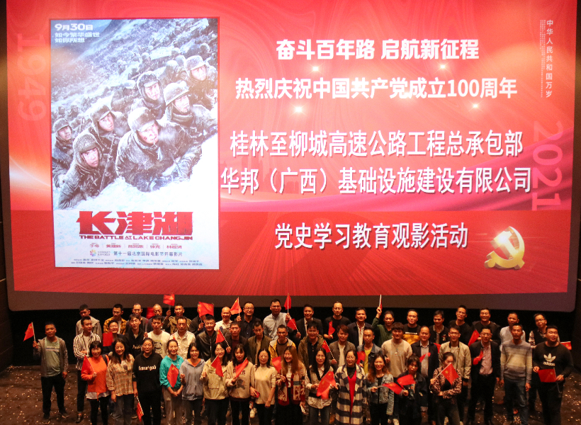 10月15日,为持续深入开展党史学习教育,进一步提高职工的思想觉悟,激励员工紧密团结,丰富职工的精神文化生活,弘扬爱国主义精神,华邦建投集团桂柳总包部、广西基建党支部组织员工观看爱国主义教育影片《长津湖》。