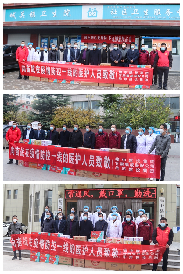 疫情面前,方显人间真情。2021年10月中旬,新一轮疫情在甘肃蔓延开来。面对突然袭来的疫情,华邦建投集团迅速响应、积极行动,10月26日,华邦建投集团向榆中县第一人民医院、榆中县中医院、榆中县城关镇卫生院的医护人员捐赠方便面、牛奶、八宝粥、饼干、罐头等生活物资,为防疫一线医护人员送温暖。