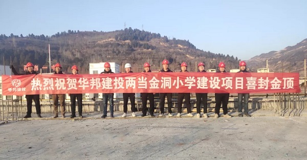 1月17日,在新年的祥和氛围中,由华邦建投集团承建的甘肃陇南两当县金洞小学建设项目(以下简称:两当金洞小学项目)传来喜报,项目综合楼及食宿楼喜封金顶,标志着项目所有单体封顶,项目建设取得阶段性成果,为下一阶段整体建成交付奠定了坚实基础。