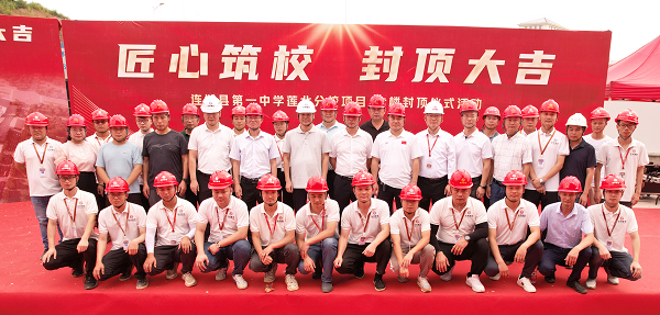 1#教学楼主体工程封顶,标志着项目建设取得阶段性成果。