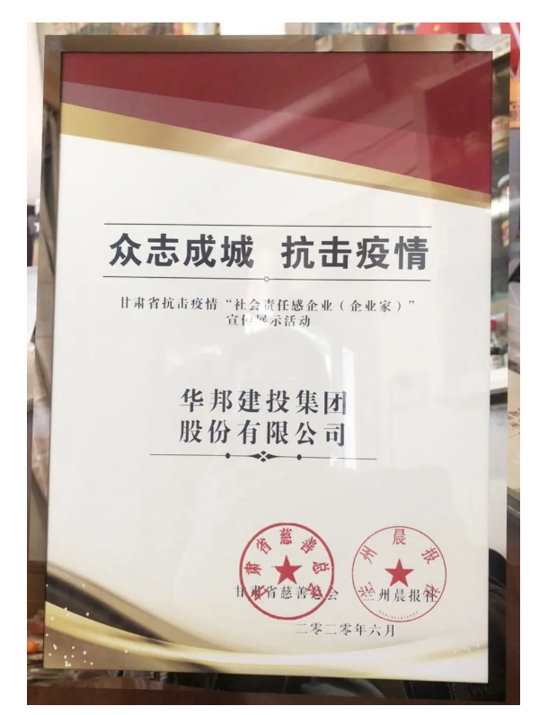 华邦建投集团获评“甘肃省抗击疫情社会责任感企业”
