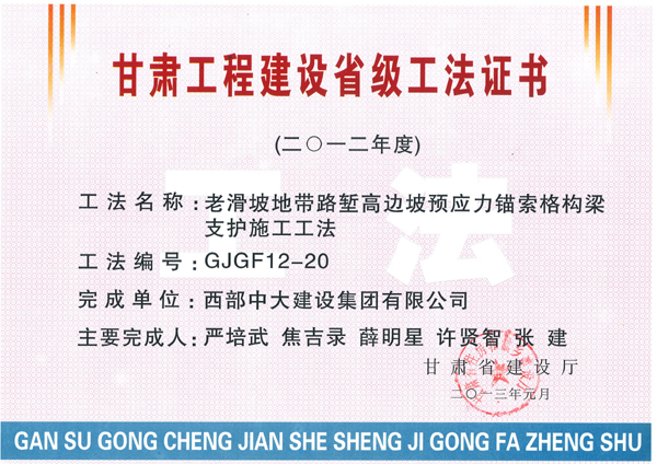 老滑坡地带路堑高边坡预应力锚索格沟梁支护施工工法