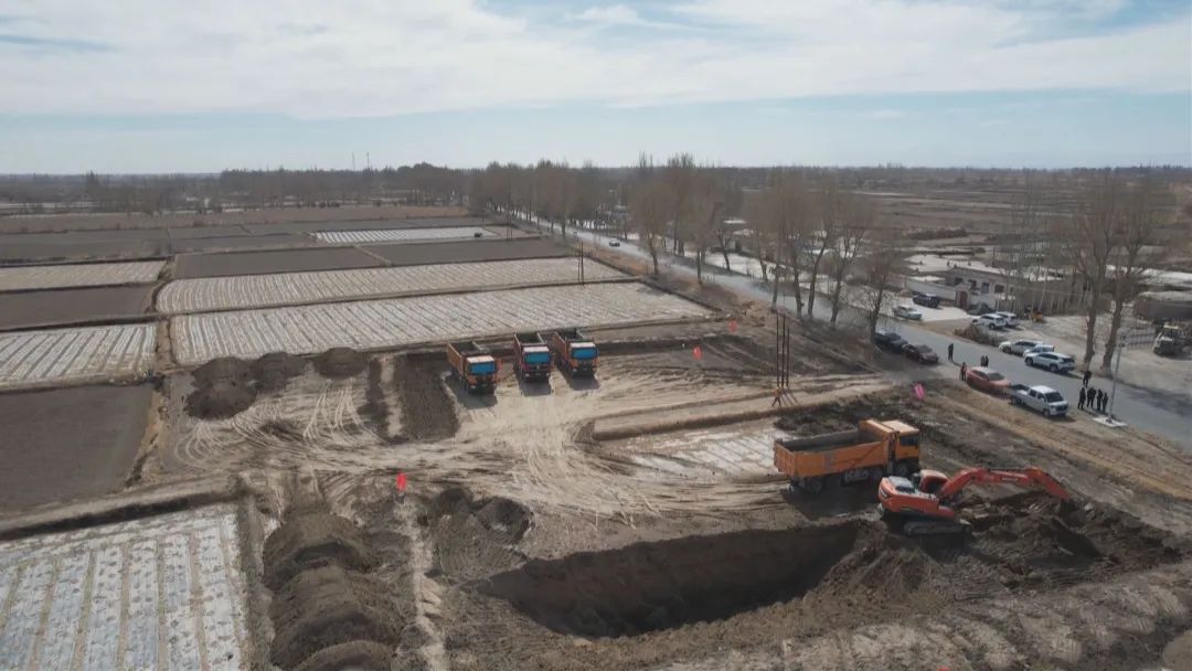 玉门市柳河镇高标准农田建设项目负责人彭天亮说:“柳河镇高标准农田建设涉及官庄子、二道沟还有红旗村,一共15000亩左右,截至今天为止已经全部开工。”