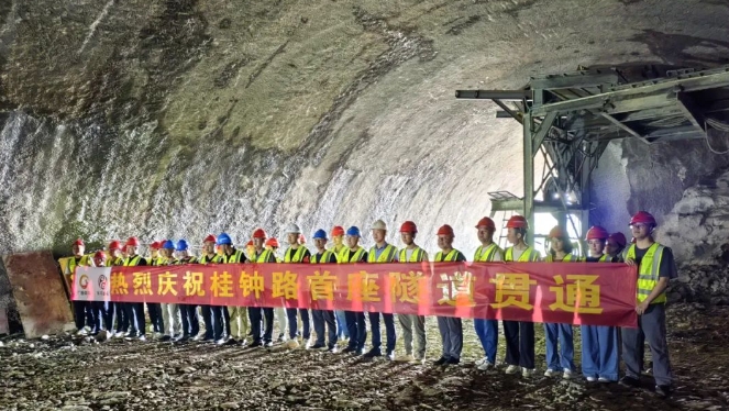 ▲桂钟六标项目克服不良地质因素,精心组织施工,确保隧道贯通顺利实现