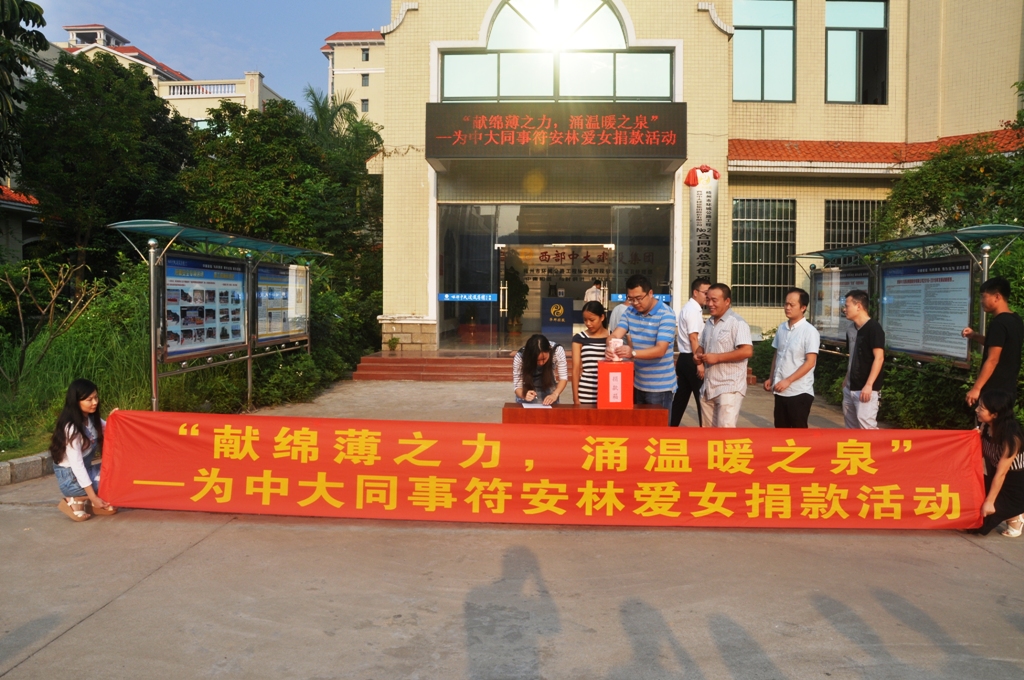 8月27日,随着集团公司一封《倡议书》的发出,员工子女符敏霞的健康问题立即牵动起西部中大建设集团广大职工的的心,集团总部、各子公司员工、各建设项目同事纷纷踊跃捐款,截止9月1日,已收到华邦控股旗下相关企业及集团公司机关、各子公司及各项目共20个单位的募捐总额共 58232.80元,于 9月1日转交到符敏霞父亲符安林手上。