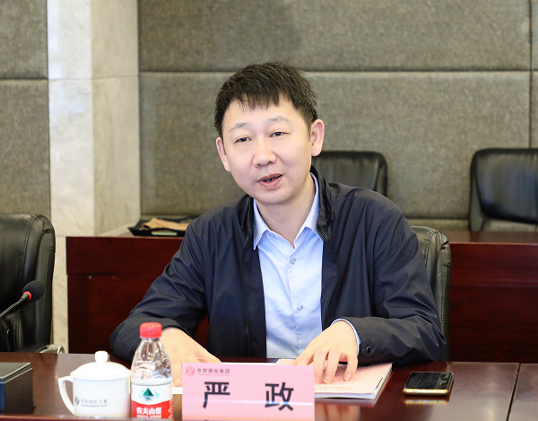 严政介绍河南省第二公路工程有限公司的基本情况。他表示,华邦建投集团在基建领域深耕多年,优势突出,双方可充分发挥各自优势,加强在项目建设、市场经营等方面的合作,共同探讨合作模式,相互促进、共谋发展,共同谱写高质量发展新篇章。