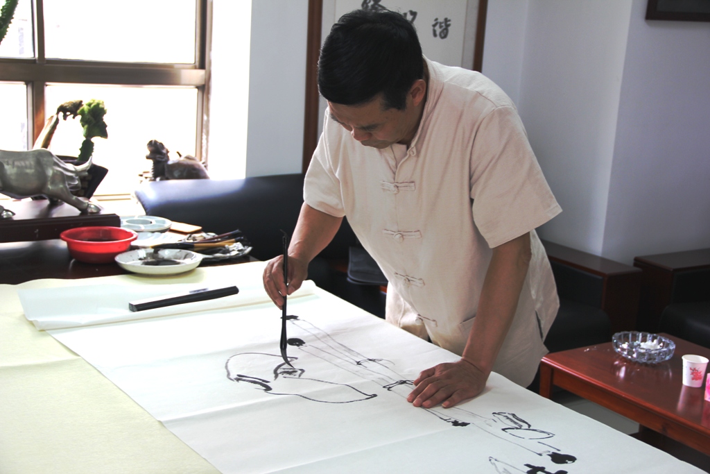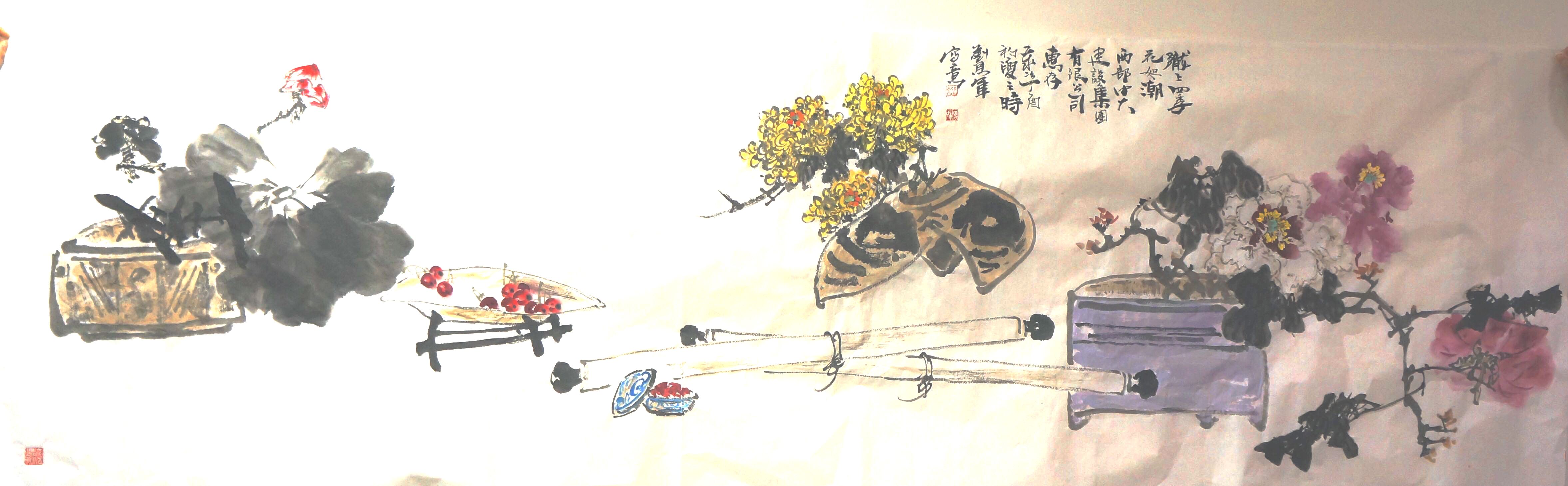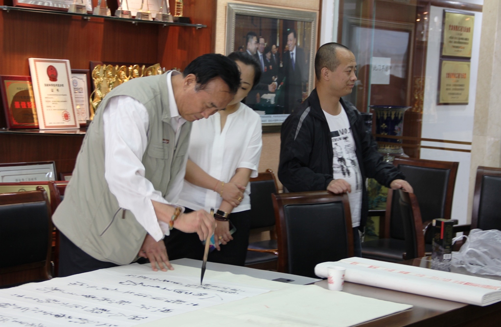 国家一级美术师、甘肃省书画研究院、甘肃省老科协书画研究院艺术顾问、甘肃省长河花鸟画研究院院长为公司现场作画