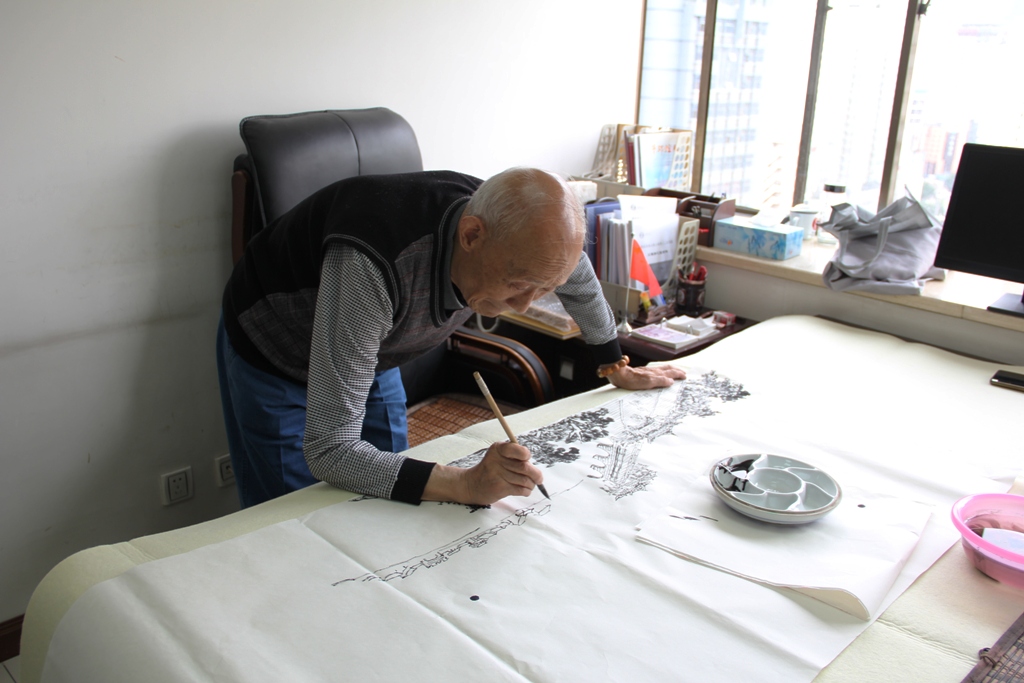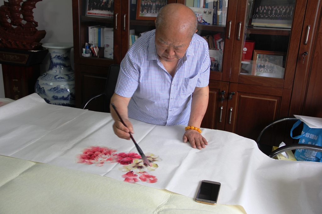 甘肃省书画研究院、甘肃省老科协书画研究院副院长王祖铭现场作画