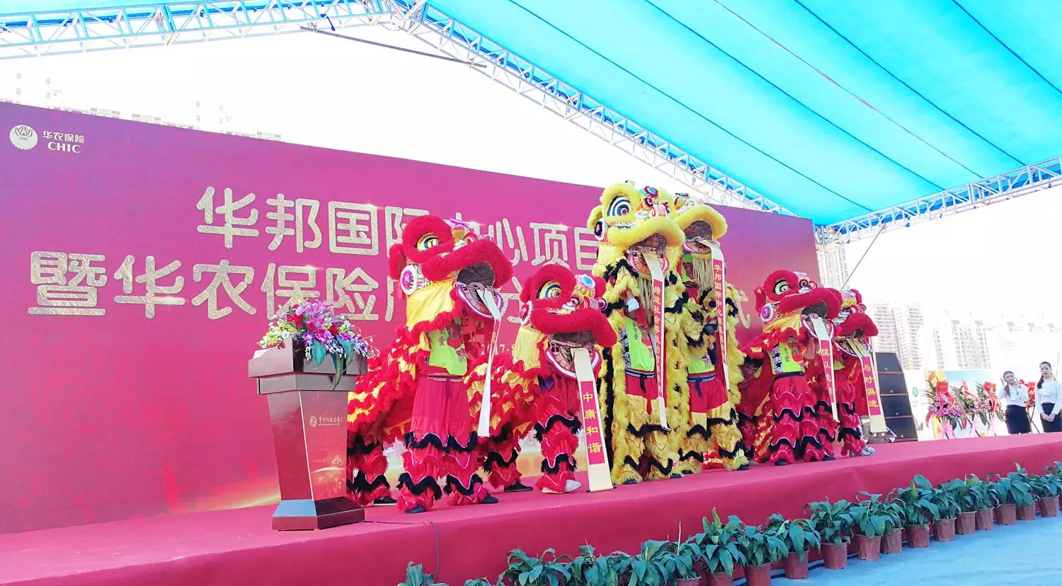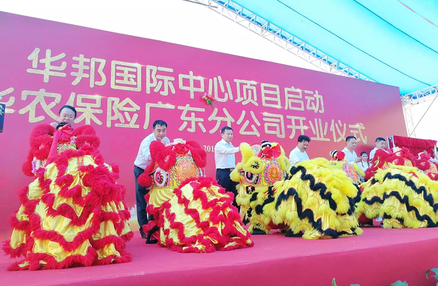在喧天的舞狮鼓乐声中,董事局主席苏如春与金融界领导、华邦高层管理者及特邀嘉宾向奠基石培土,标志着华邦国际中心正式启动。苏如春与广州市海珠区委副书记、区长李海洲,广州市金融工作局副巡视员李贵远,华农保险公司总经理张宗韬为华农保险广东公司揭牌,标志着华农保险广东公司正式开业。