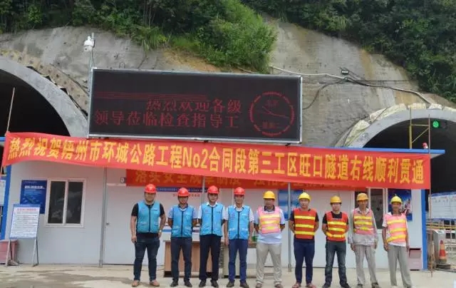 梧州环城项目旺口隧道位于梧州市万秀区扶典村内,隧道左线长729米,右线长741米,最大埋深约105.734米,设计时速为100公里/时。该隧道是广西梧州市地区连接广东广佛肇庆高速公路通道之一,旺口隧道的顺利贯通,将给梧州市环城公路项目省际通道沥青路面的施工带来极大便利,对进一步缩短省际通道沥青施工工期,实现按期通车目标具有重要意义。